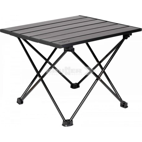 Tavolino di appoggio molto compatto con piano arrotondabile.